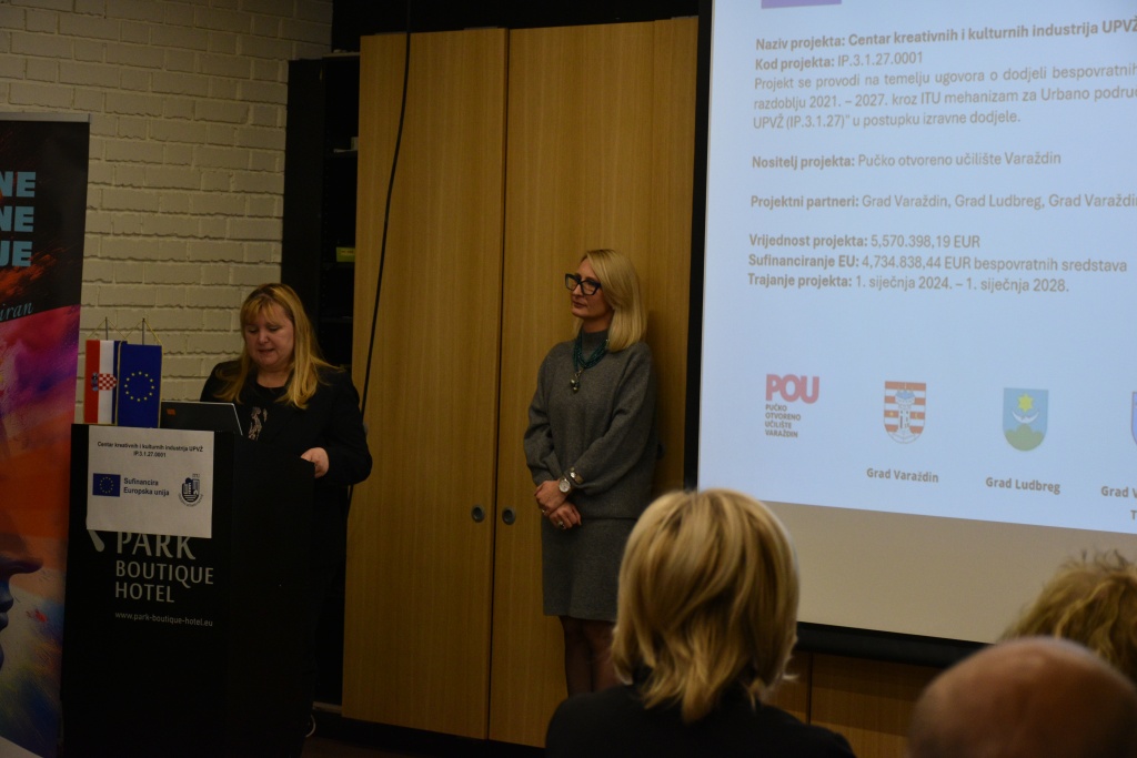 U Park Boutique hotelu u utorak su predstavljene aktivnosti na realizaciji projekta "Centra kreativnih i kulturnih industrija urbanog područja Varaždin" na mjestu nekadašnjeg Kina dom gdje će biti nova multimedijalna dvorana, art kino, uredski prostori, učionice, konferencijska dvorana, izložbeni prostor, kuhinja, skladište, garderoba i ostali prostori. Investitor projekta je Pučko otvoreno učilište Varaždin, a partneri na projektu su gradovi Varaždin, Ludbreg i Varaždinske Toplice te općine Trnovec Bartolovečki, Maruševec i Vinica.  Detaljnije o ovom projektu vrijednom oko 5,5 milijuna eura koji je 85% sufinanciran od strane Europske unije poslušajte u prilogu Nikoline Jureković Novoselec, a u galeriji niže saznajte kako bi to trebalo izgledati.
