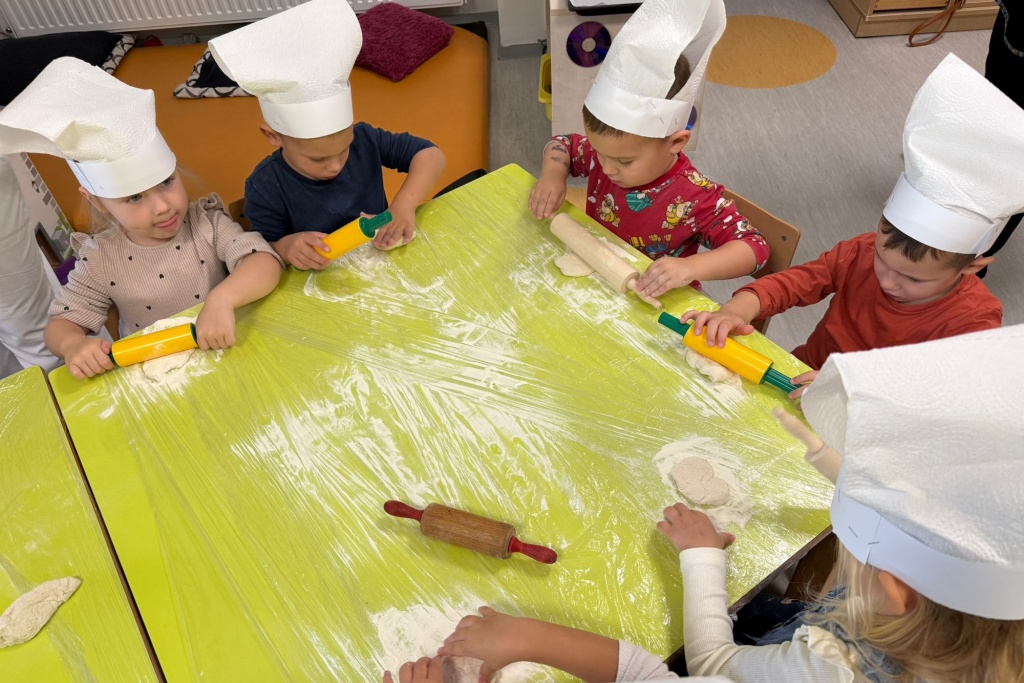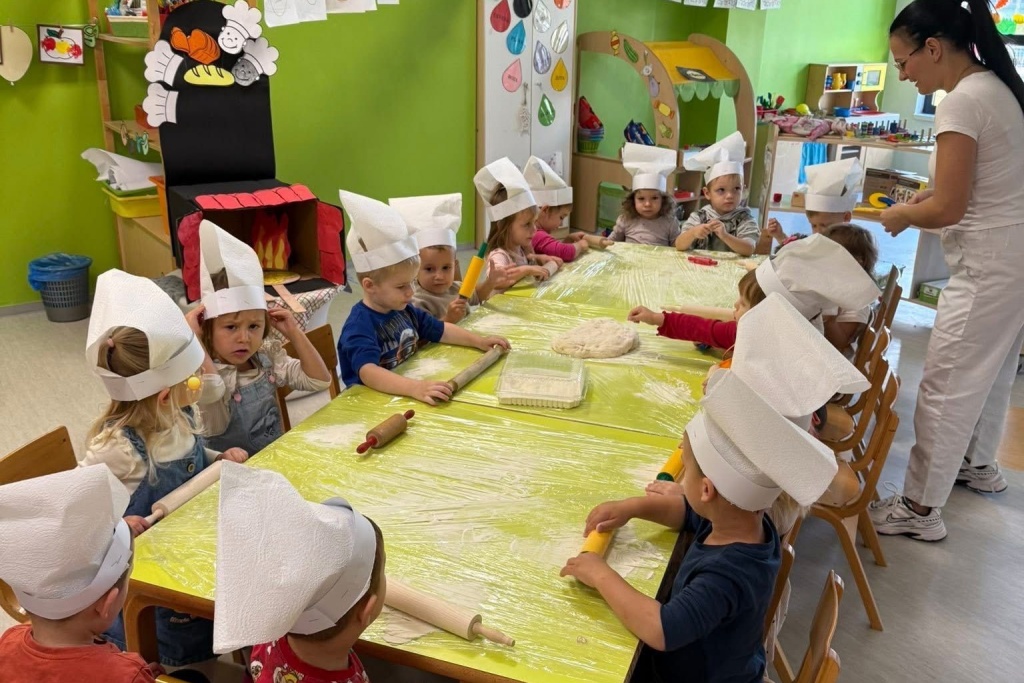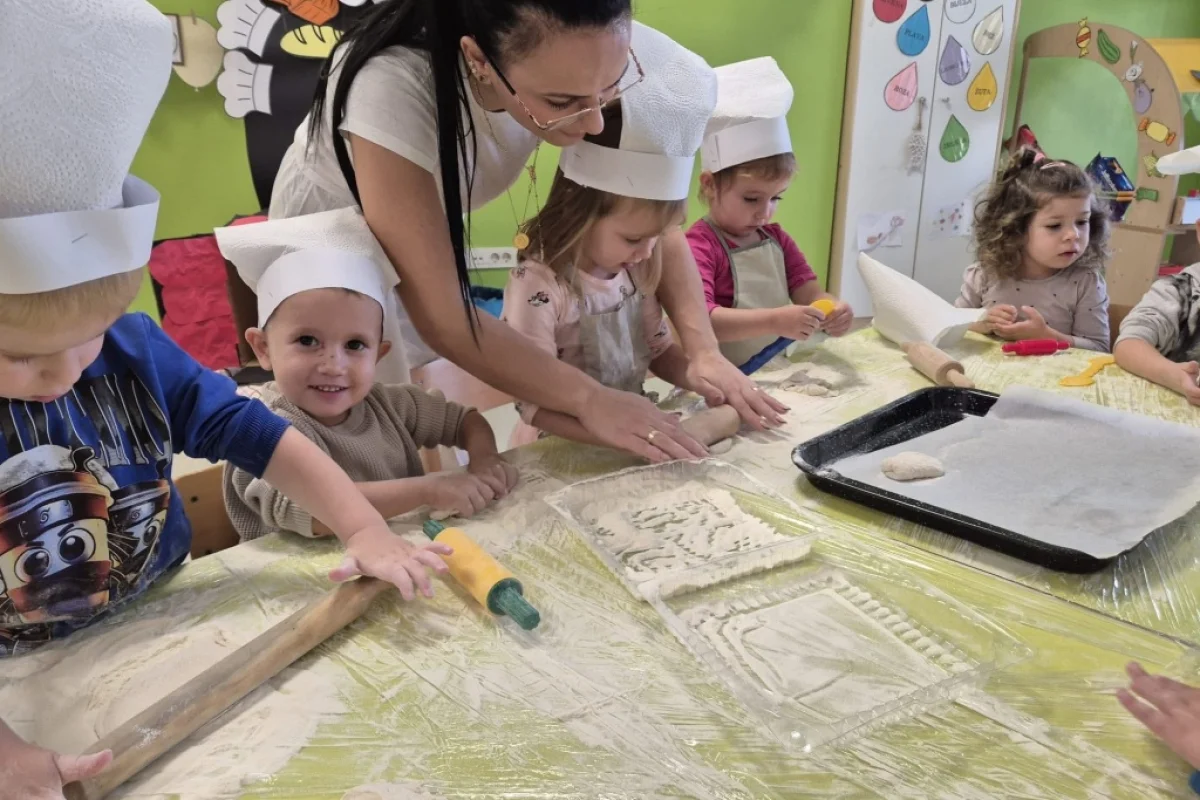 Gospođa Robertina djeci je pokazala kako se priprema i peče tijesto te otkrila male tajne nastanka mirisnih klipića i finih pereca. Djeca su s oduševljenjem promatrala, mijesila i oblikovala svoje male pekarske proizvode, a kasnije su cijelim vrtićem zamirisali svježe pečeni proizvodi.
