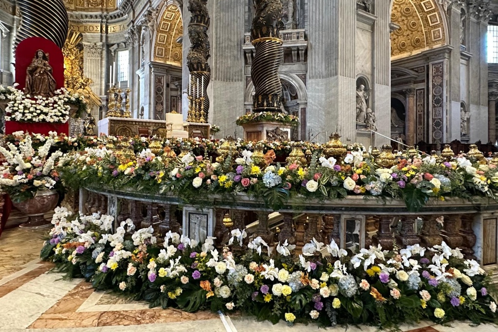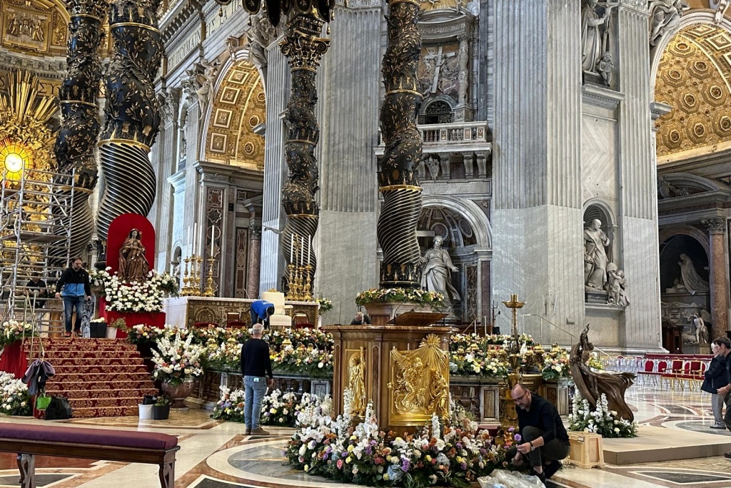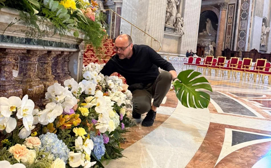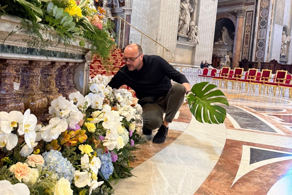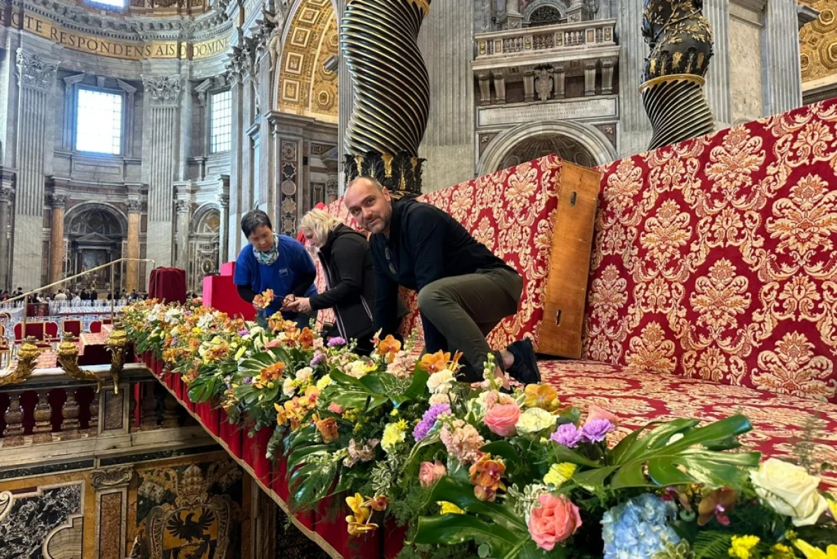 Kamioni su u zoru stigli na Trg svetog Petra, ispred najveće kršćanske bazilike, a kada se Rim probudio u sunčano jutro, more boja već se prelijevalo preko bijelog stubišta koje vodi do oltara: 65.000 crvenih tulipana, žutih narcisa, ljubičastih zumbula, ruže, azaleje, gerberi i ukrasne grančice u svim nijansama zelene.